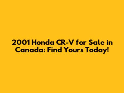 Finding a 2001 Honda CR-V for sale in Canada can be a rewarding experience. With its reliability, practicality, and affordability, the 2001 CR-V is a great choice for anyone looking for a budget-friendly vehicle. Just remember to do your research, inspect the vehicle carefully, and negotiate a fair price. Happy hunting, and enjoy your new ride!