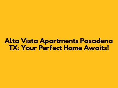 Looking for the perfect apartment in Pasadena, TX? Alta Vista Apartments might just be the place you've been searching for! Finding the right apartment can feel like a real challenge, guys. You've got to consider location, amenities, price, and a whole bunch of other factors. But don't worry, we're here to give you the lowdown on everything Alta Vista Apartments has to offer, so you can decide if it's the right fit for you. We'll dive into the details about the location, the types of apartments they have, the amenities you can enjoy, and what it's like to live in the neighborhood. By the end of this article, you'll have a clear picture of whether Alta Vista Apartments could be your next home sweet home.