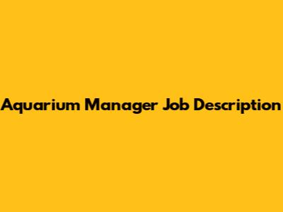 Aquarium Manager Job Description: Key Responsibilities