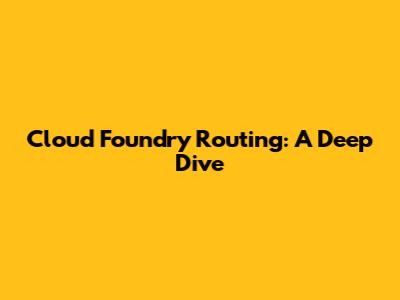 Cloud Foundry Routing: A Deep Dive