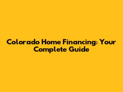 Colorado Home Financing: Your Complete Guide