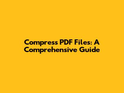 Compress PDF Files: A Comprehensive Guide