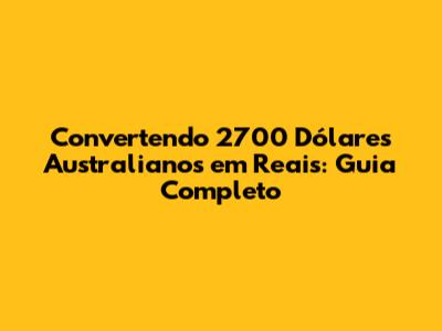 Convertendo 2700 Dólares Australianos Para Reais: Guia Completo