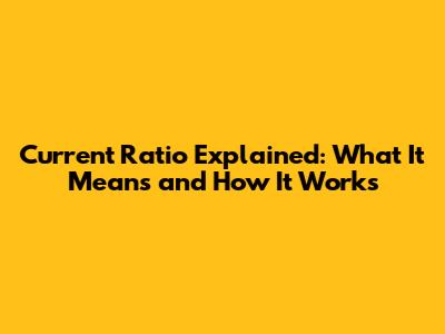 Current Ratio Explained: What It Means And How It Works