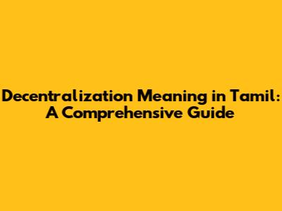 Decentralization Meaning In Tamil: A Comprehensive Guide