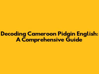 Hey guys! Ever found yourself scratching your head, trying to understand a conversation in Cameroon Pidgin English? You're not alone! This vibrant, unique language is a melting pot of influences, and navigating it can be tricky. But fear not! This guide will break down everything you need to know about Cameroon Pidgin English, from its origins to its modern usage. So, buckle up, and let's dive in!