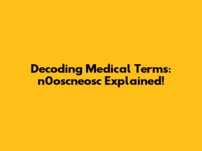 Decoding Medical Terms: N0oscneosc Explained!