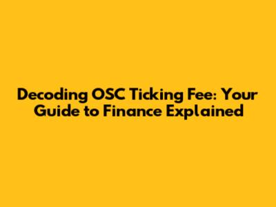 Decoding OSC Ticking Fee: Your Guide To Finance Explained