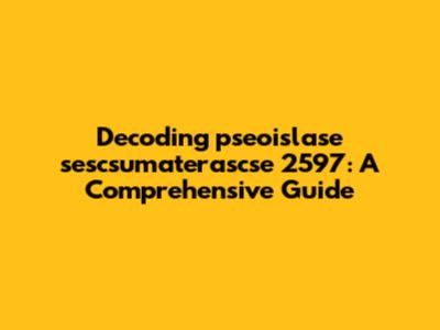 Decoding Pseoislase Sescsumaterascse 2597: A Comprehensive Guide