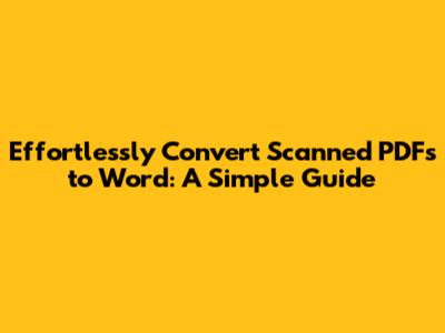 Effortlessly Convert Scanned PDFs To Word: A Simple Guide