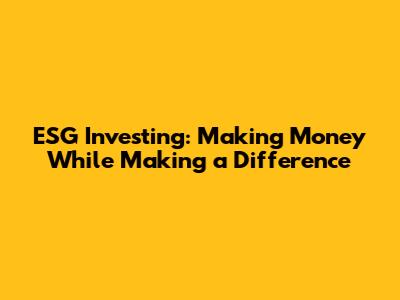 ESG Investing: Making Money While Making A Difference
