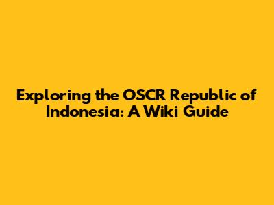 Exploring The OSCR Republic Of Indonesia: A Wiki Guide