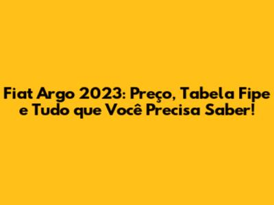 Fiat Argo 2023: Preço, Tabela Fipe E Tudo Que Você Precisa Saber!