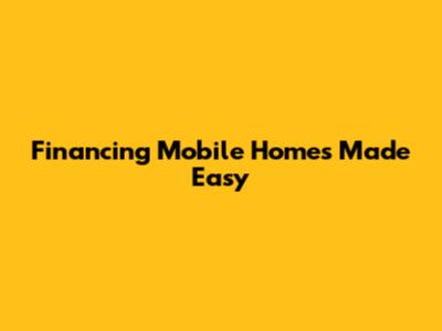 Financing Mobile Homes Made Easy