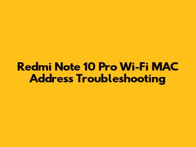 Common Redmi Note 10 Pro Wi-Fi MAC Address Issues