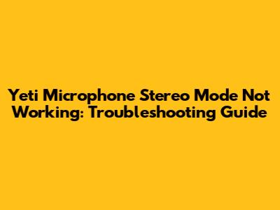 Fix: Yeti Microphone Stereo Mode Not Working