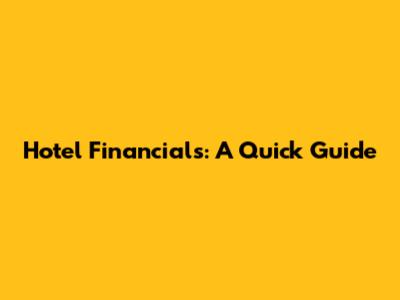 Hotel Financials: A Quick Guide
