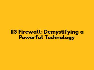 IIS Firewall: Demystifying A Powerful Technology