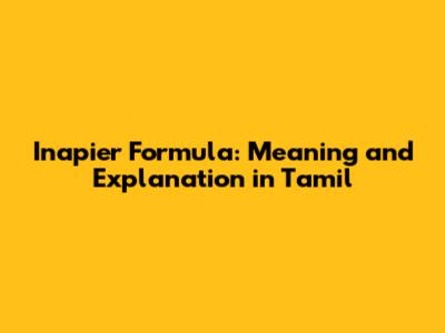 Inapier Formula: Meaning And Explanation In Tamil