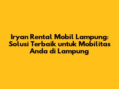 Iryan Rental Mobil Lampung: Pilihan Terbaik Untuk Perjalanan Anda