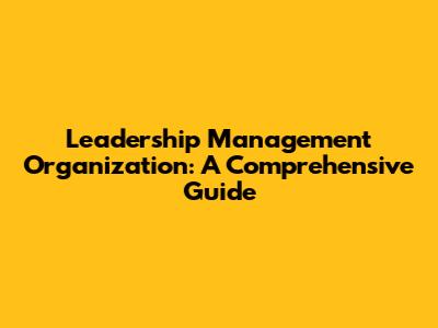Leadership, Management, And Organization: A Comprehensive Guide