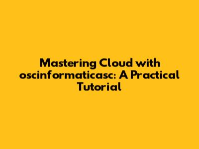 Mastering Cloud With Oscinformaticasc: A Practical Tutorial