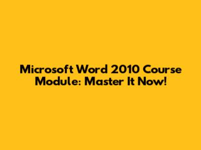Microsoft Word 2010 Course Module: Master It Now!
