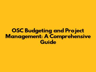 OSC Budgeting And Project Management: A Comprehensive Guide