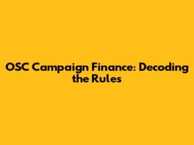 OSC Campaign Finance: Decoding The Rules
