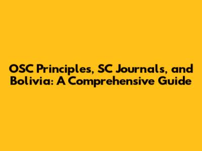 OSC Principles, SC Journals, And Bolivia: A Comprehensive Guide
