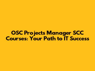 OSC Projects Manager SCC Courses: Your Path To IT Success