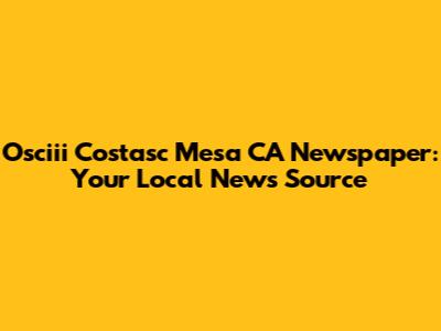 Unveiling the Osciii Costasc Mesa CA Newspaper: What to Expect