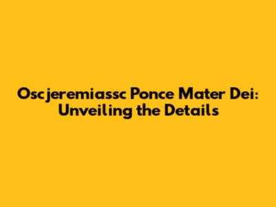 Oscjeremiassc Ponce Mater Dei: A Comprehensive Guide