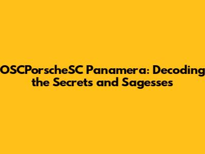 OSCPorscheSC Panamera: Decoding The Secrets And Sagesses