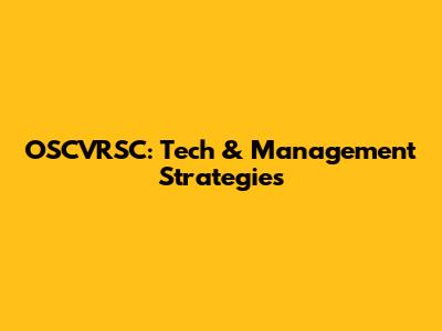 OSCVRSC: Tech & Management Strategies