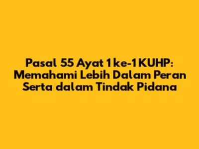 Pasal 55 ayat 1 ke-1 KUHP secara eksplisit menyatakan tentang siapa saja yang dapat dipidana sebagai pelaku tindak pidana. Bunyinya mungkin agak teknis, tapi intinya adalah pasal ini mengatur tentang siapa saja yang bisa dianggap bertanggung jawab atas terjadinya suatu tindak pidana. Secara garis besar, pasal ini menjerat orang-orang yang: