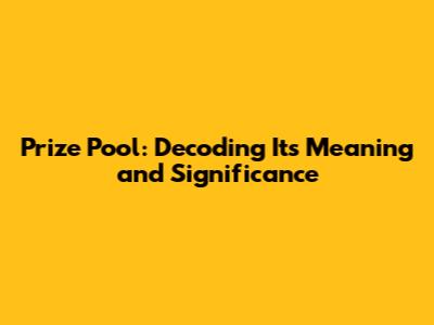 Prize Pool: Decoding Its Meaning And Significance
