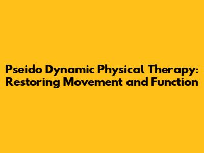 Pseido Dynamic Physical Therapy: Restoring Movement And Function