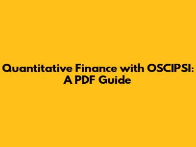 Quantitative Finance With OSCIPSI: A PDF Guide