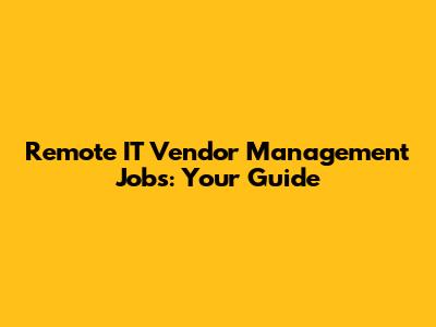 Remote IT Vendor Management Jobs: Your Guide