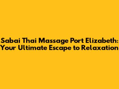 Hey guys! Are you feeling stressed out and in desperate need of some serious relaxation? Well, look no further than Sabai Thai Massage in Port Elizabeth! This isn't just your average massage parlor; it's a sanctuary where ancient Thai techniques meet modern-day comfort, offering a truly unique and rejuvenating experience. We're going to dive deep into what makes Sabai Thai Massage the go-to spot for unwinding in PE, covering everything from their specialized treatments to the overall ambiance that sets them apart.