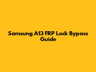 Samsung A13 FRP Lock Bypass Guide