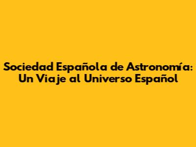 Sociedad Española De Astronomía: Un Viaje Al Universo Español