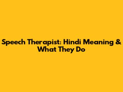 Speech Therapist: Hindi Meaning & What They Do