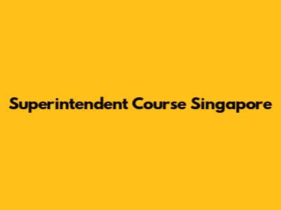 Superintendent Course Singapore: Your Path To Success