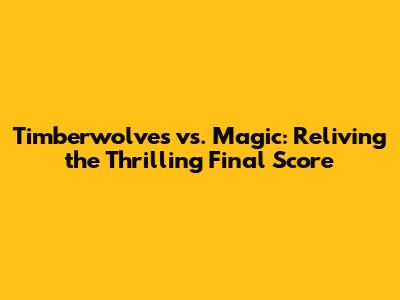 Hey sports fanatics! Ever found yourselves on the edge of your seats, biting your nails as the clock ticks down in a nail-biting NBA game? If you're anything like me, you're always eager to dissect every play, every point, and of course, the final score! Today, we're diving deep into a recent clash between the Minnesota Timberwolves and the Orlando Magic. Let's rewind and relive the excitement, the tension, and, most importantly, the final score that sealed the fate of these two teams. Get ready for a recap that's packed with details, insights, and a whole lot of basketball love. We'll be looking back at the game, analyzing key moments, and discussing how the final score reflects the overall performance of both teams. Whether you're a die-hard fan or just a casual observer, there's something here for everyone. So, grab your favorite snacks, settle in, and let's get started on this exciting journey back to the court!