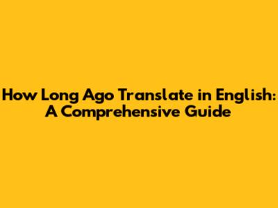 Translating 'How Long Ago' Into English: A Comprehensive Guide