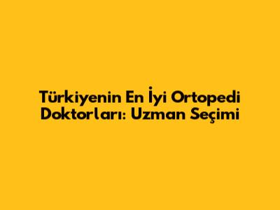 Türkiye'nin En İyi Ortopedi Doktorları: Uzman Seçimi