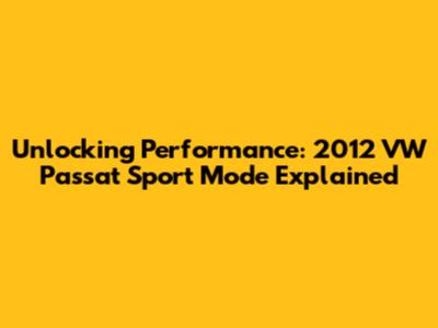 Unlocking Performance: 2012 VW Passat Sport Mode Explained