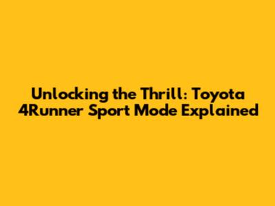 Unlocking The Thrill: Toyota 4Runner Sport Mode Explained